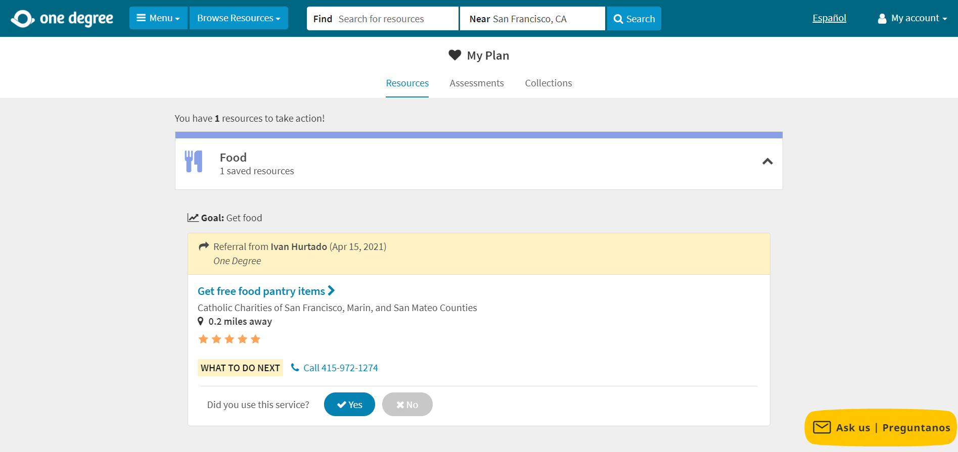 If the client clicks on the “Click here to see your referral!” button or if they click anywhere on the map image, they will be directed to their My Plan page on One Degree.